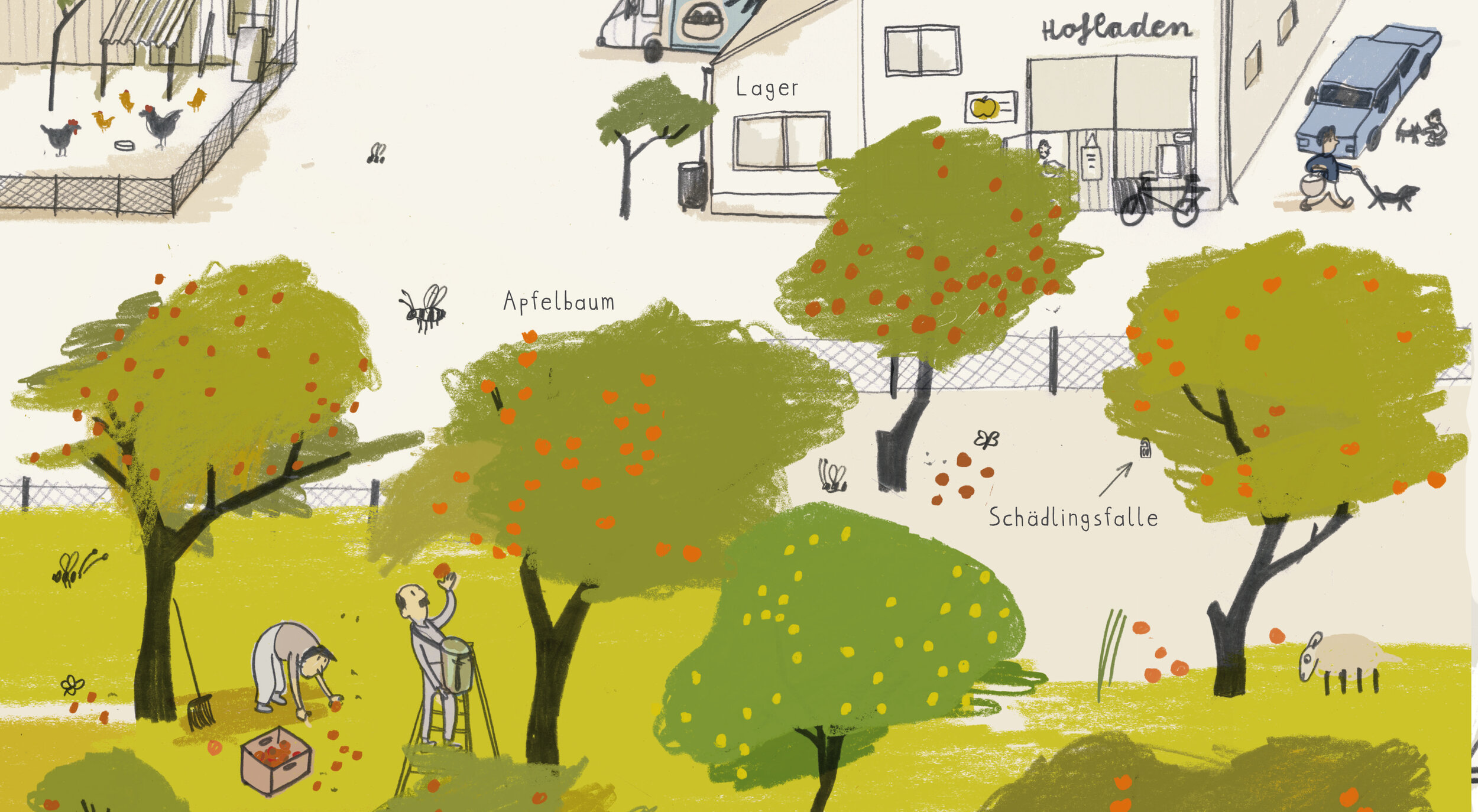 Klappentext: Egal, ob wir allein oder gemeinsam essen, viel oder wenig, ob Fleisch oder lieber nur Obst und Gemüse – unser Essen stellt jemand her. Aber wer? Und wo? Mit vielen lebendigen Bildern und kurzen Texten geht Julia Dürr diesen Fragen auf den Grund. Sie führt uns durch Bauernhöfe, Milch- und Schlachtbetriebe, in eine Backstube und in die Brötchenfabrik, auf Fischerboot und Fischfarm, über Plantagen, Obst-wiesen und in ein Gewächshaus.